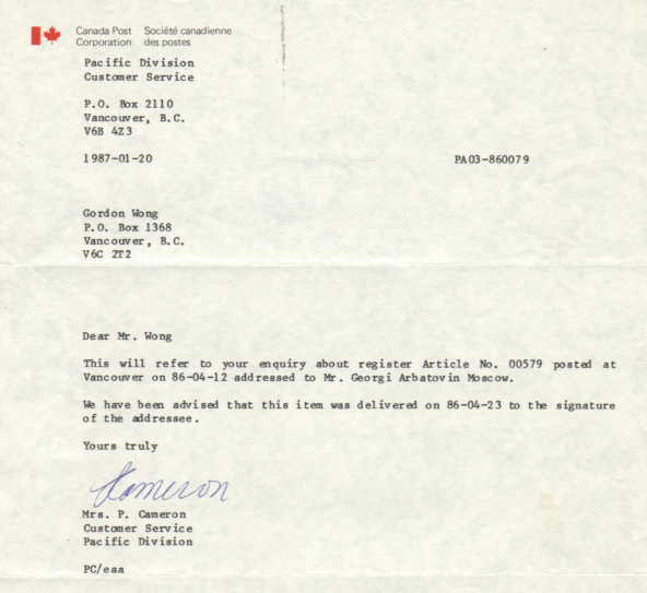 SCAN OF CORRESPONDENCE COPY RE TERM OF REFERENCE 2) a) OF SEPTEMBER 2, 1986 SUBMISSION TO